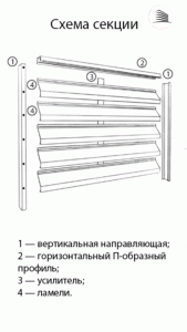 Горизонтальный профиль или завершающий. Именно он через усилители, удерживает ламели от провисания. Если горизонтальный профиль мягкий, то со временем он провиснет сам и позволит провиснуть ламелям. Поэтому горизонтальный профиль изготавливается из стали толщиной от одного до полутора миллиметров.